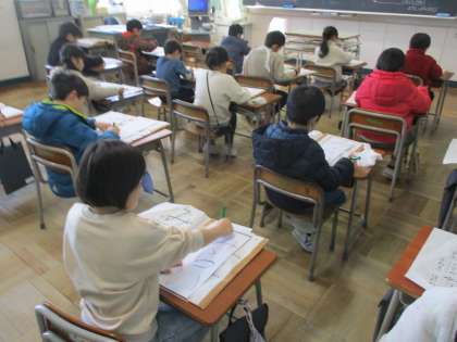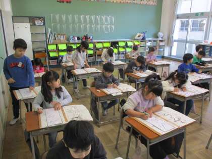 昨日は、初めての書初大会がありました。練習の成果を発揮しようと集中して、取り組む姿がたくさん見られました。