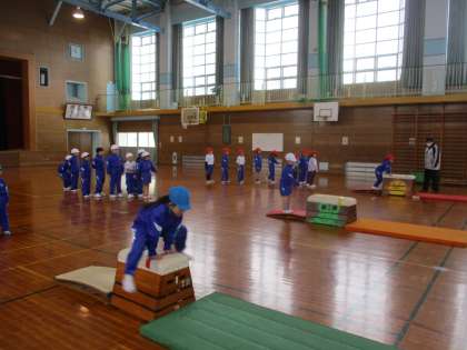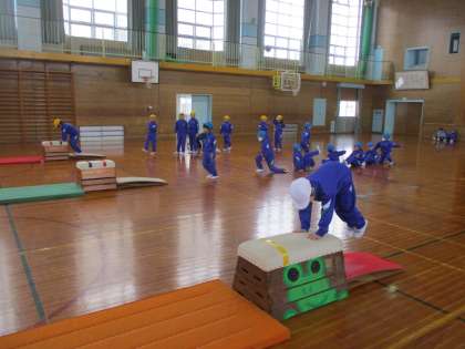 体育科の学習では「跳び箱運動」をしています。基本から丁寧に練習し、より高く、より美しく跳べるようになろうと取り組んでいます。