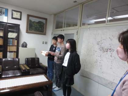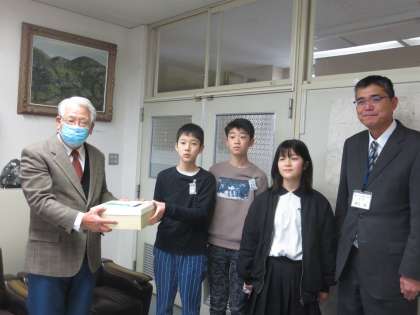 能登半島地震による復興に向けた義援金の贈呈式がありました。学校を代表して6年生の児童が、社会福祉協議会の方へ贈呈しました。