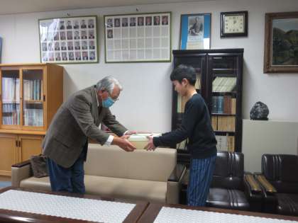 能登半島地震による復興に向けた義援金の贈呈式がありました。学校を代表して6年生の児童が、社会福祉協議会の方へ贈呈しました。