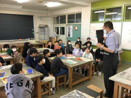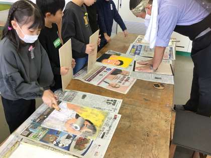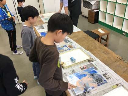 今日は、外部から講師の方に来ていただき、版画教室を行いました。