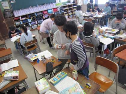 「空き缶は電気を通さないのに、表面を削ると電気を通すのが不思議」「1円玉や10円玉が電気を通すなんて意外!」と、実験しながらいろいろな不思議に出合いました。