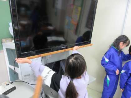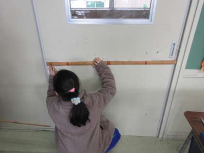 予想を立ててから、教室の様々な場所にものさしをあて、長さ調べをしている子供たちでした。