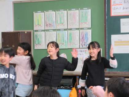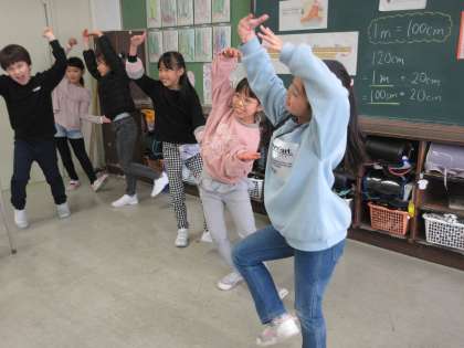 子供たちは、2学期に続けて九九名人カードを進めたり、答えを言いながら自分の体で表して覚えようとしたりしています。算数が苦手な子も、みんなと一緒に楽しく学んでいました。