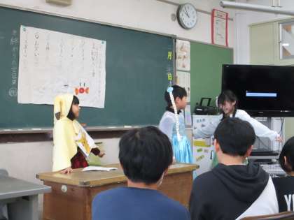 今日は、学級でお楽しみ会を行いました。ためになるクイズや衣装に身を包んだ友達の発表を楽しみました。