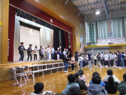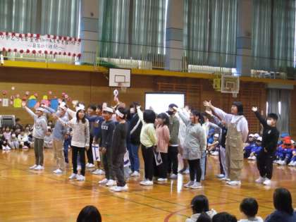 「卒業を祝う会」では、6年生に関するクイズを出題したり、思い出の曲に合わせてダンスを踊って盛り上げたりしました。6年生が楽しんでいる姿を見て、嬉しそうな子供たちでした。