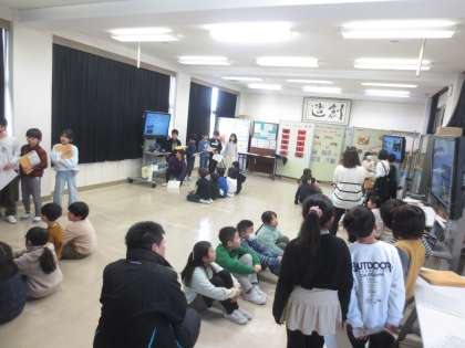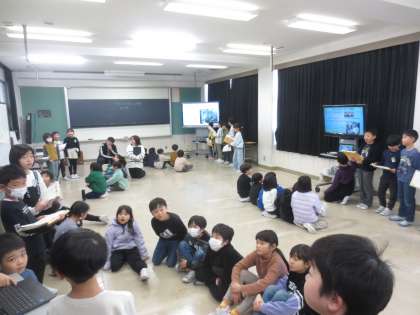 2学期に、熊野校区の4つの企業について学習を深めた子供たち。3学期は、それを2年生に発表することになり、「2年生が聞いていて分かりやすい発表にしたい」「来年、総合の学習を楽しみにしてほしい」という願いをもち、準備を進めました。真剣に聞いてくれている2年生の反応に大満足でした。