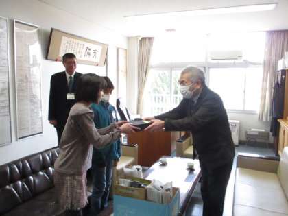 新富観光サービス株式会社の方が、従業員のみなさんで集めたベルマークを熊野小学校に寄付してくださいました。