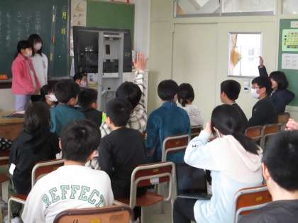 今日は、5年生で最後の学級集会を行いました。それぞれの係で出し物を準備し、クイズや鬼ごっこ、ドッチボール、ゲーム等をして楽しみました。最後には、同じクラスで過ごした友達と1年間を振り返りました。