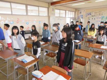 音楽科で、「Believe」と「すてきな一歩」の学習をしました。旋律の繰り返しや強弱の記号に気をつけながら歌唱しました。