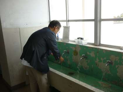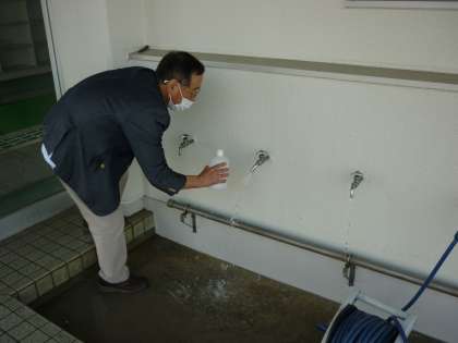 蔵本薬剤師に来ていただき、学校の飲料水の検査を行いました。