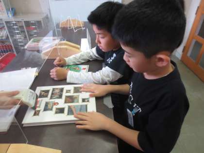 今年度の図書の貸し出しが始まるに当たり、「図書室オリエンテーション」を行いました。図書館司書から、図書室の本の並び方やマナー等を教えていただいた後、本の読み聞かせを行いました。わくわくしながら絵本を見つめる子供たち。今年度もたくさんの本に親しんでほしいと思います。