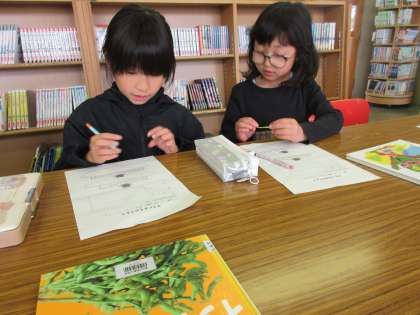 生活科では、自分が育てる野菜を調べる学習を行いました。図書室へ行き、いろいろな野菜の特徴や育て方のポイントを見つけて、どの野菜にするか迷っている子供たちもいました。ゴールデンウィーク明けから育てるのが楽しみです。
