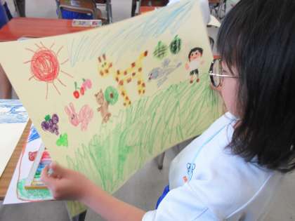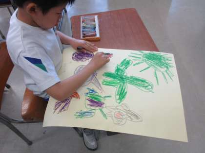 ふしぎなたまごは、「どんな形」で、「どんな色」で、「中からどんなことが生まれるか」を想像しながら描く活動です。今回は、中から生まれたことを描きました。子供たち一人一人の個性あふれる作品ができあがるのまでもうすぐです。