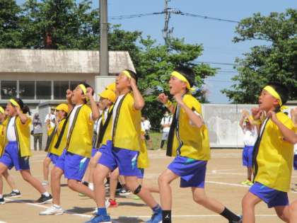 自分たちで一から作り上げた応援を、堂々と披露する姿はとても輝いていました。写真は、黄団の様子です。