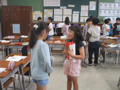 「いつ、どこで、だれと、どうして、どのように」等を使うと、友達からたくさんの情報を聞き出すことができ、その友達のことがよりよく分かることが分かった子供たちです。