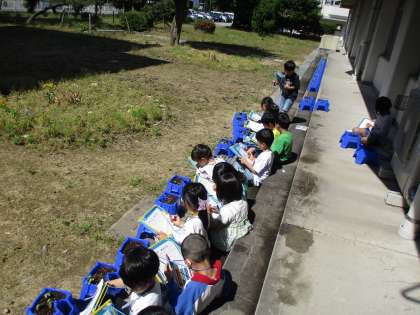 生活科の時間に、観察をしたり、きれいな花を咲かせるためにどのようにお世話をするのがよいかをみんなで話し合ったりしました。