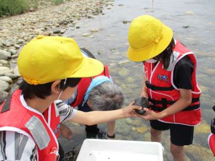 今日は、熊野川で水棲生物を探したり、水質調査をしたりしました。熊野川の環境についてさらに詳しく知ることができ、きれいな熊野川の環境についてさらに調査を進めたいと考えを深めていました。