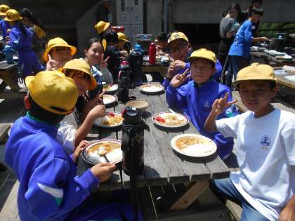 2日目は、野外炊飯でカレーライスを作りました。みんなで協力して作ったカレーライスは、とってもおいしかったです。