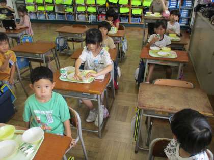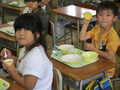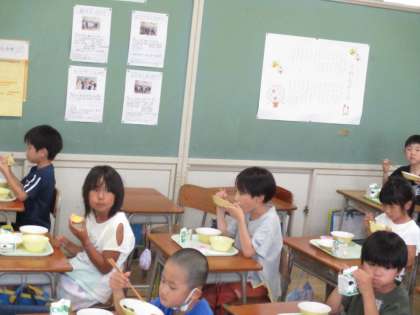 「レモンタルトおいしい!」「桃ゼリーのほうがいいよ!」と友達と笑顔で話す子供たちの姿が見られました。