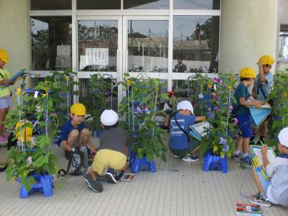 あさがおの花が咲き始めました!(1年生)