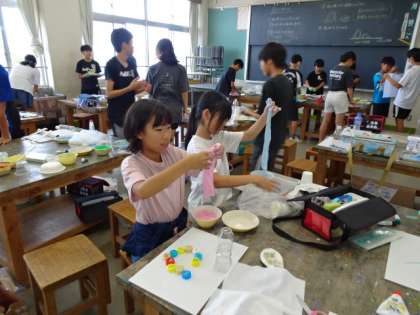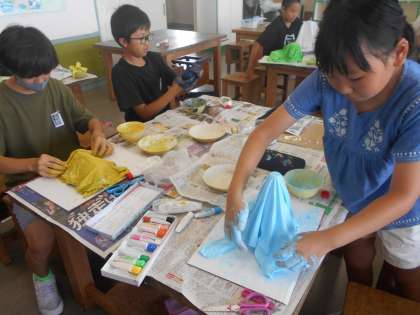 図画工作科では、液体粘土を使った作品づくりを行っています。