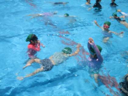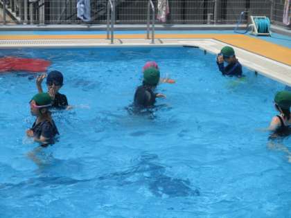 昨年よりも、泳ぐ距離が伸びたり、プールの床に届くまで潜ることができるようになったりと、一人一人が自分の成長に気付きながら学習に取り組みました。