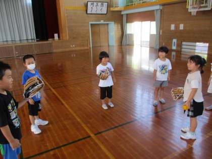 初めてグローブに触った子も多く、「かっこいいね!」と大興奮の様子でした。