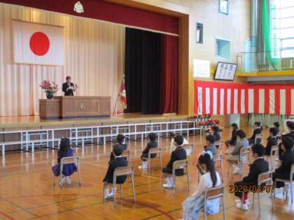 式辞では、校長先生から、「元気のよい返事や挨拶の大切さ」「話している人の方を見て、話をきくことの大切さ」「交通安全に気を付けることの大切さ」についてのお話がありました。