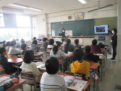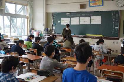 今日から授業が始まりました。新しい教科書を開いて、気持ちも新たにし、がんばろうとしている子供たちの姿が見られます。外国語の授業では、外国語活動支援の先生と一緒に、自己紹介の仕方を学び、出身地や好きなもの等、自分のことを英語で伝えられるように積極的に発音練習に励みました。