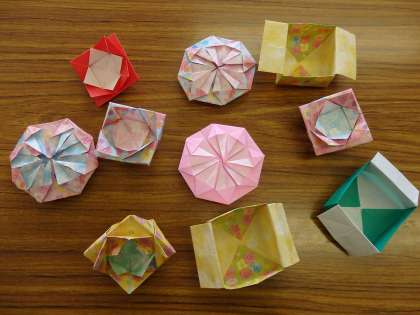 せんせいは きょう、 おりがみを おりました。よかったら、みんなも ちょうせんしてみてね。