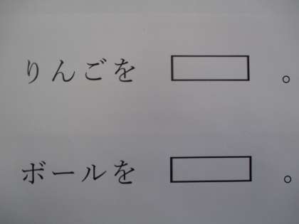 きょうはこくごのもんだいにちょうせん!□にはいることばを三つずつさがしてみましょう。三ついじょうさがせるかな。