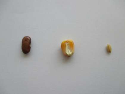 中には、インゲンマメ、トウモロコシ、イネの3種類の種子が入っています。