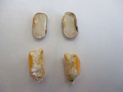 インゲンマメとトウモロコシの種子を割ってみました。