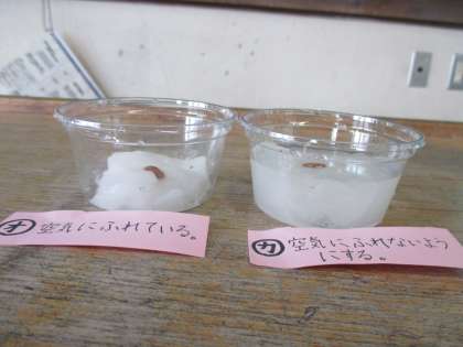条件がとちゅうでかわらないように、脱脂綿の水がかわいていないかなど、毎日観察しましょう。