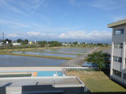 がっこうの ちかくの たんぼに おみずが はいりました。