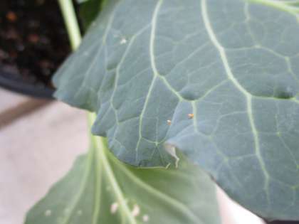 こんなに小さなたまごから、まずはモンシロチョウのよう虫が生まれてきます。