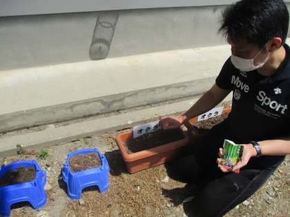 ホウセンカ、ヒマワリ、オクラ ピーマン、ワタ。