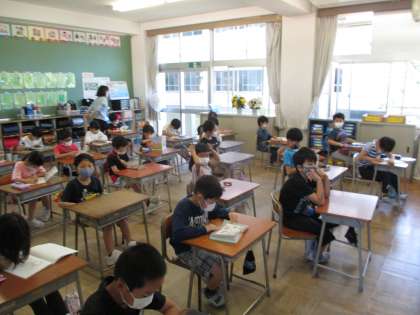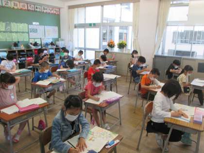 国語科では、休業中に学習した漢字の書き順や使い方を確認し、算数科では「たし算のひっ算」の練習をしました。6月から、休業中に行った内容を復習しながら学習を進めていきます。課題の丸付け等のご協力、ありがとうございました。