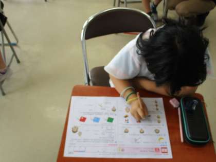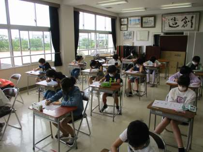 外国語のテストでは、リスニングの問題で、人物の好きな物や名前のスペルを聞き取ったり、自分の名前を正しいアルファベットの書き方で書いたりしました。