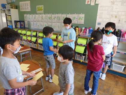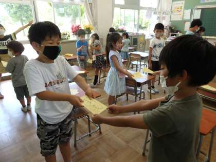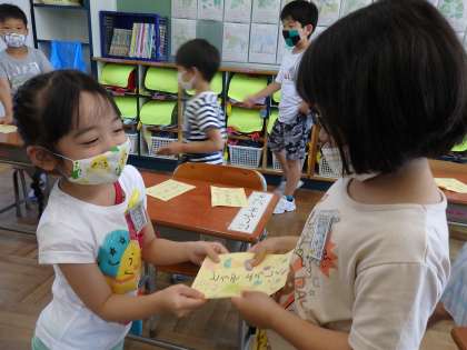 臨時休業中に作った「どうぞよろしくね」カードを交換しました。