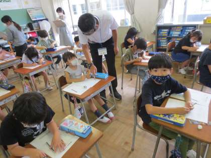 7月2日、2年生の算数です。「長さをはかるときには、みんなで同じ物を使ってはかることが大切」だと分かりました。