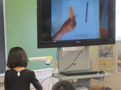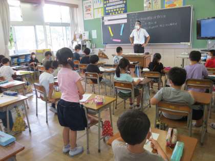 7月2日、2年生の算数です。「長さをはかるときには、みんなで同じ物を使ってはかることが大切」だと分かりました。
