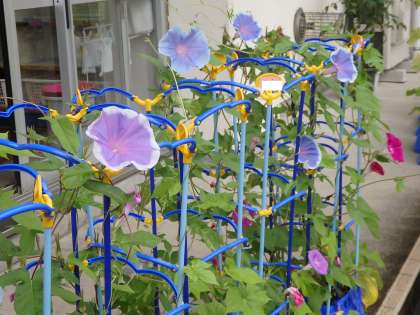 あさがおの花がどんどん咲き始め、みんな嬉しそうです。