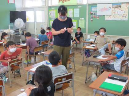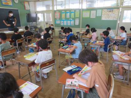 2年1組は、きれいな字で連絡帳を書いています。正しく書けたら、先生からスタンプをもらいます。全員正しく書くことができました。