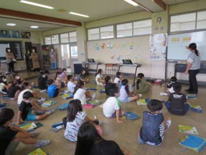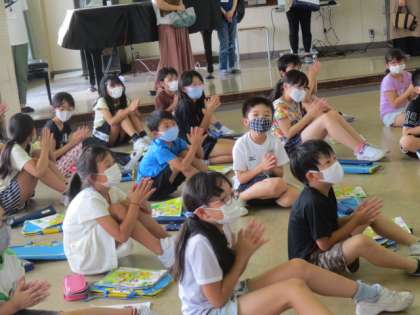 8月4日の3年2組です みんなで楽でリズム奏をしました