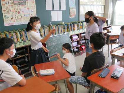 運動会に向けての準備が始まりました。色団のスローガンを作ったり、応援を決めたりしています。限られた時間の中で少しでも準備を進めようと、団役員を中心に、一人一人が自分の仕事に集中して取り組んでいます。小学校生活最後の運動会、最高の思い出になるように、2学期も頑張っていきます。