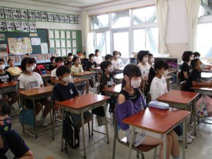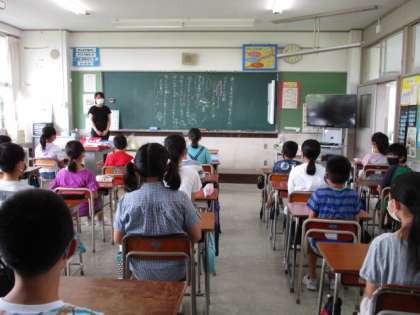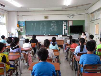 5年生の様子です。黒板には、先生からのメッセージが書いてあります。