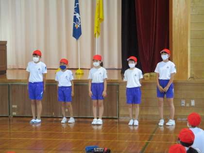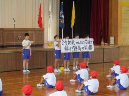 団リーダーの5年生は団の先頭に立ち、一人一人堂々と運動会の決意を述べていました。これからの活躍に期待しています。
