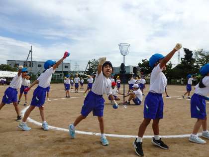 玉入れでは、2年生と一緒に競技を楽しみました。